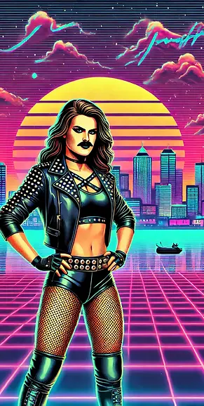 Her wardrobe? Oh, it's a fabulous mix of leather jackets, studded belts, fishnet stockings, and combat boots. Basically, she looks like she walked straight out of a glam-punk wrestling match. Accessories include spiked bracelets, chokers, and bold statement jewelry that scream "I'm here to kick ass and make you laugh."